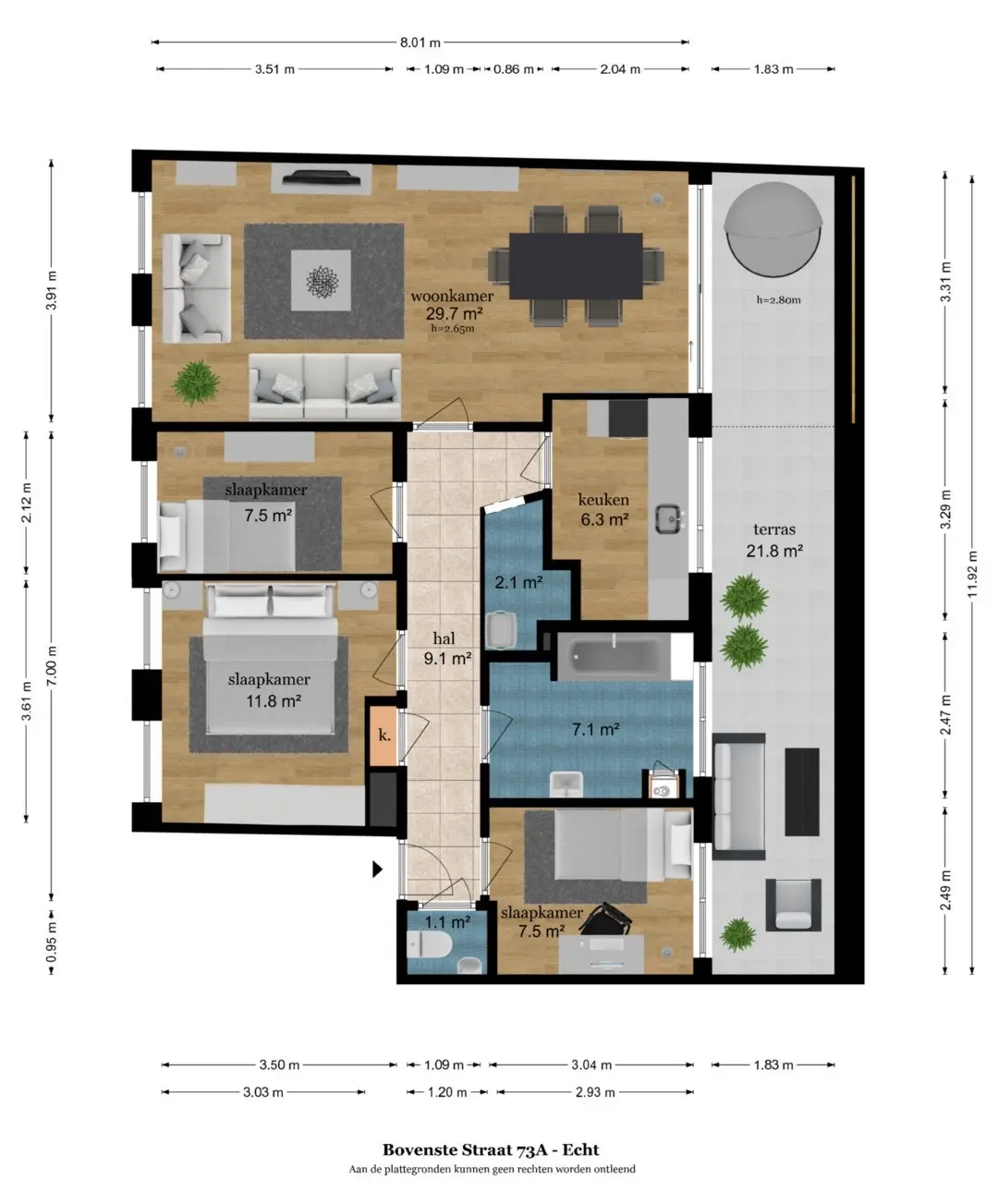 • Drie volwaardige slaapkamers