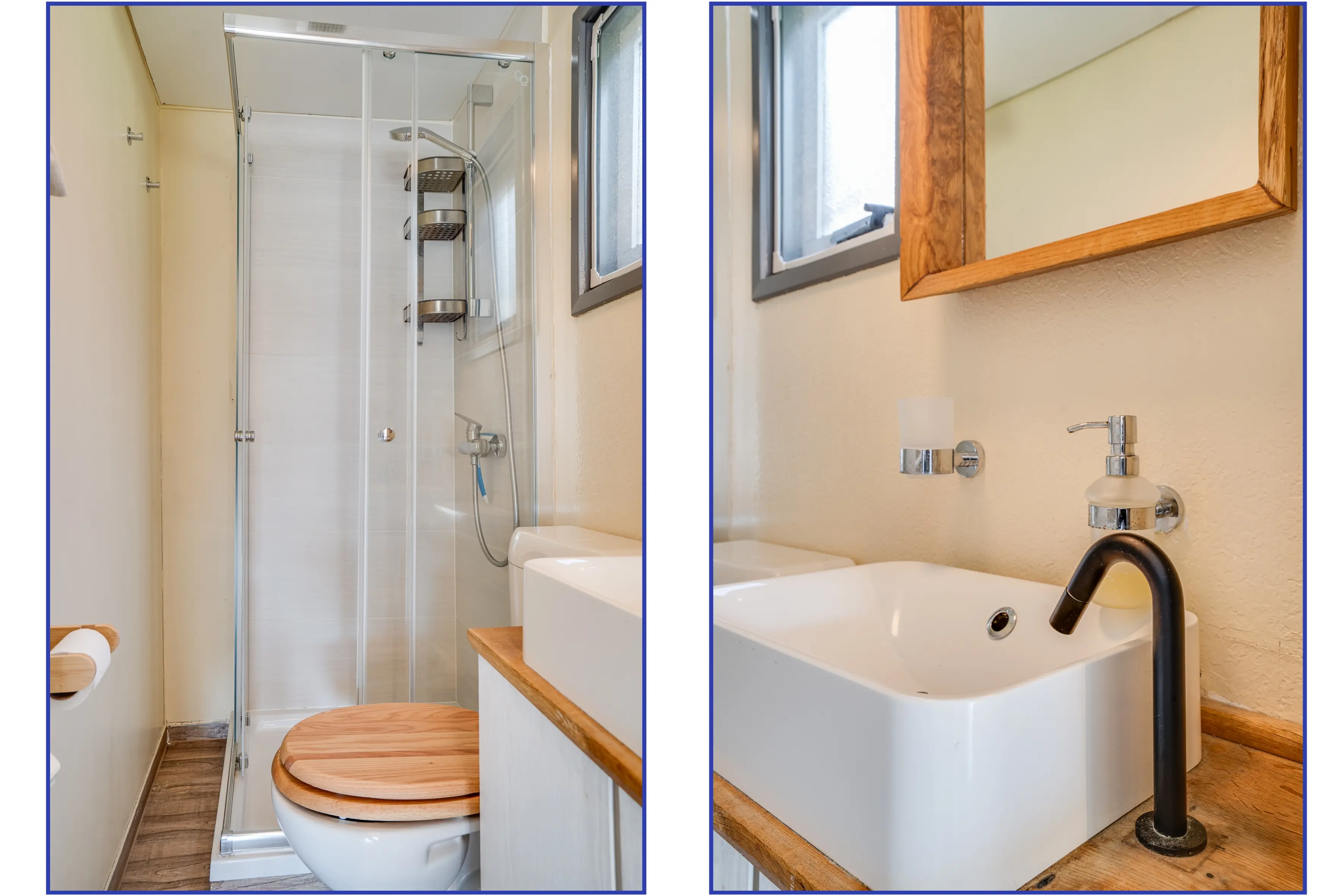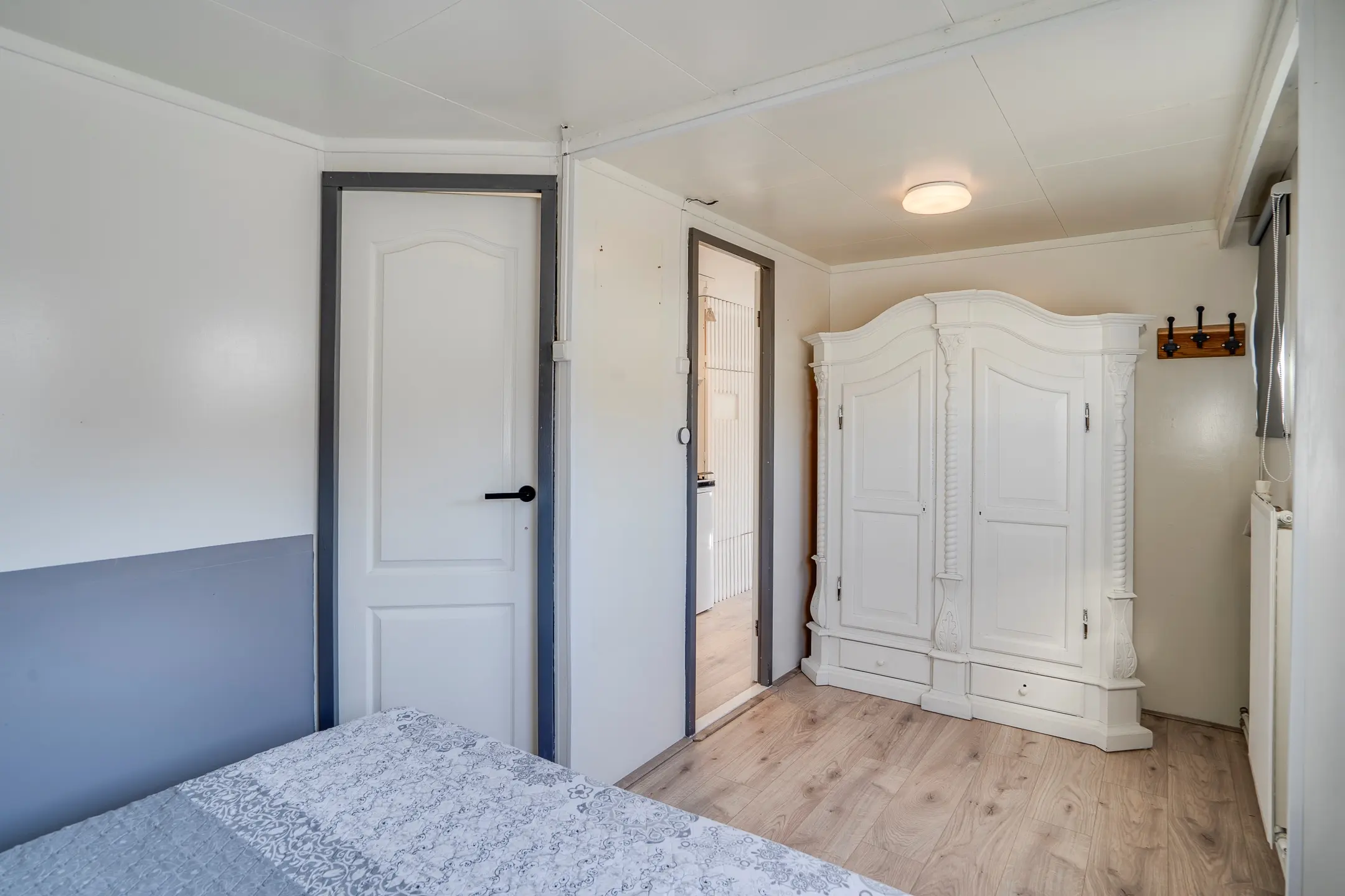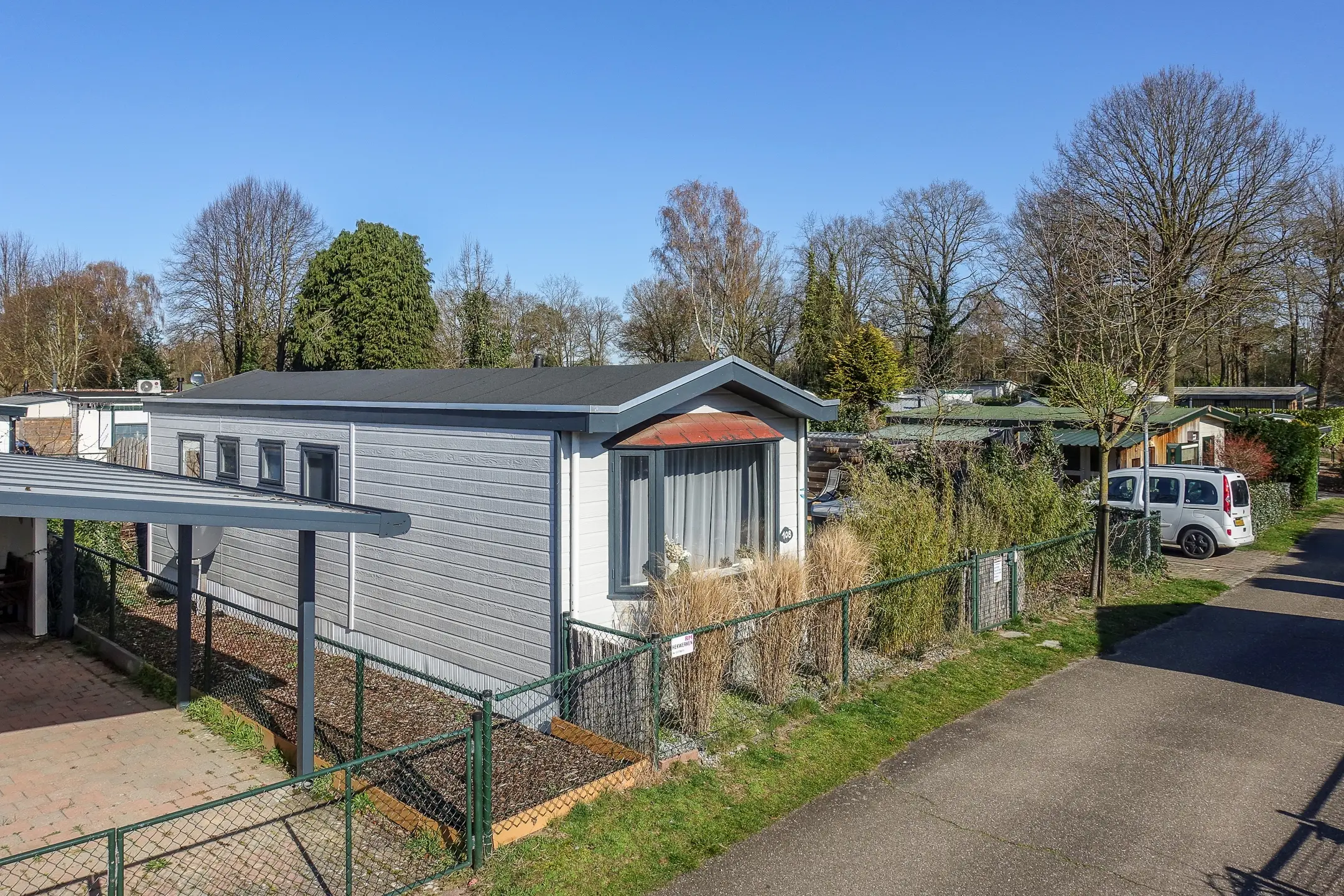 Oorspronkelijk beschikt het chalet over twee slaapkamers, momenteel samengevoegd tot één royale slaapkamer. Indien gewenst is de oorspronkelijke indeling eenvoudig te herstellen. De badkamer is in 2023 volledig vernieuwd en voorzien van een douche, toilet en wastafel – strak, fris en instapklaar.