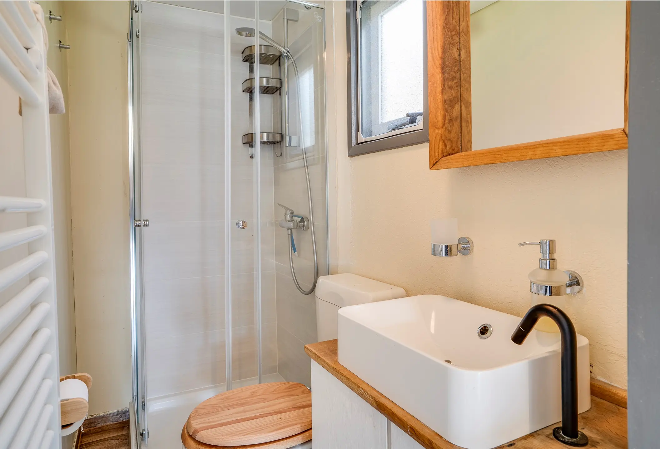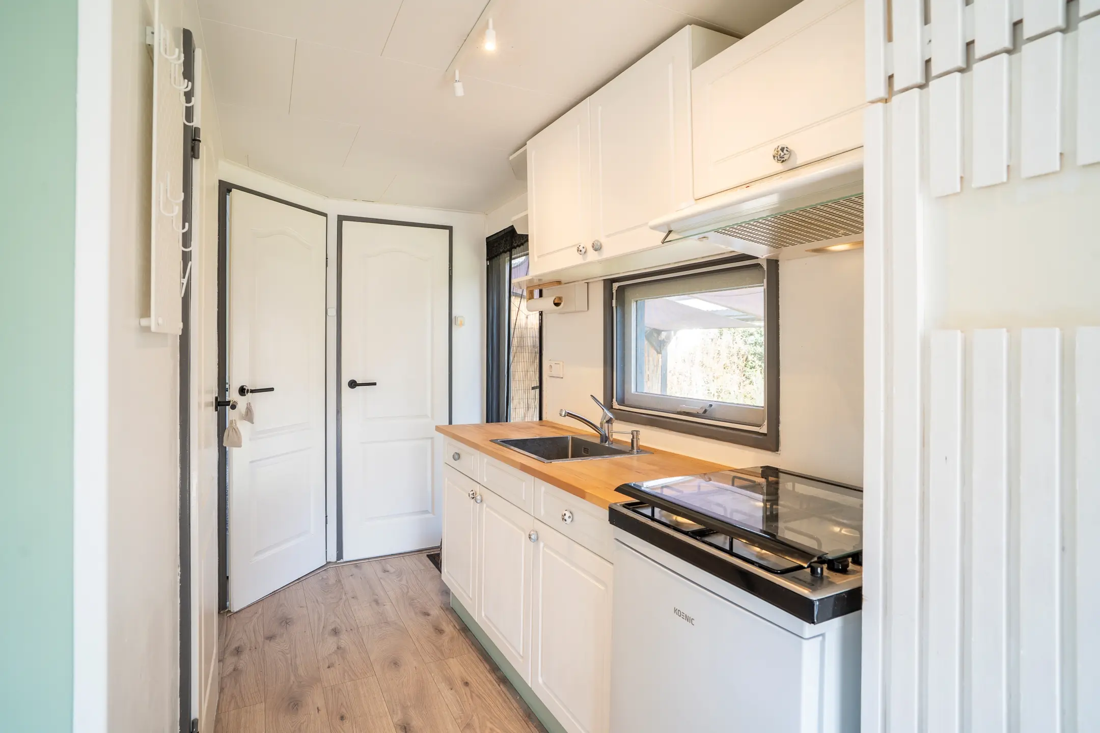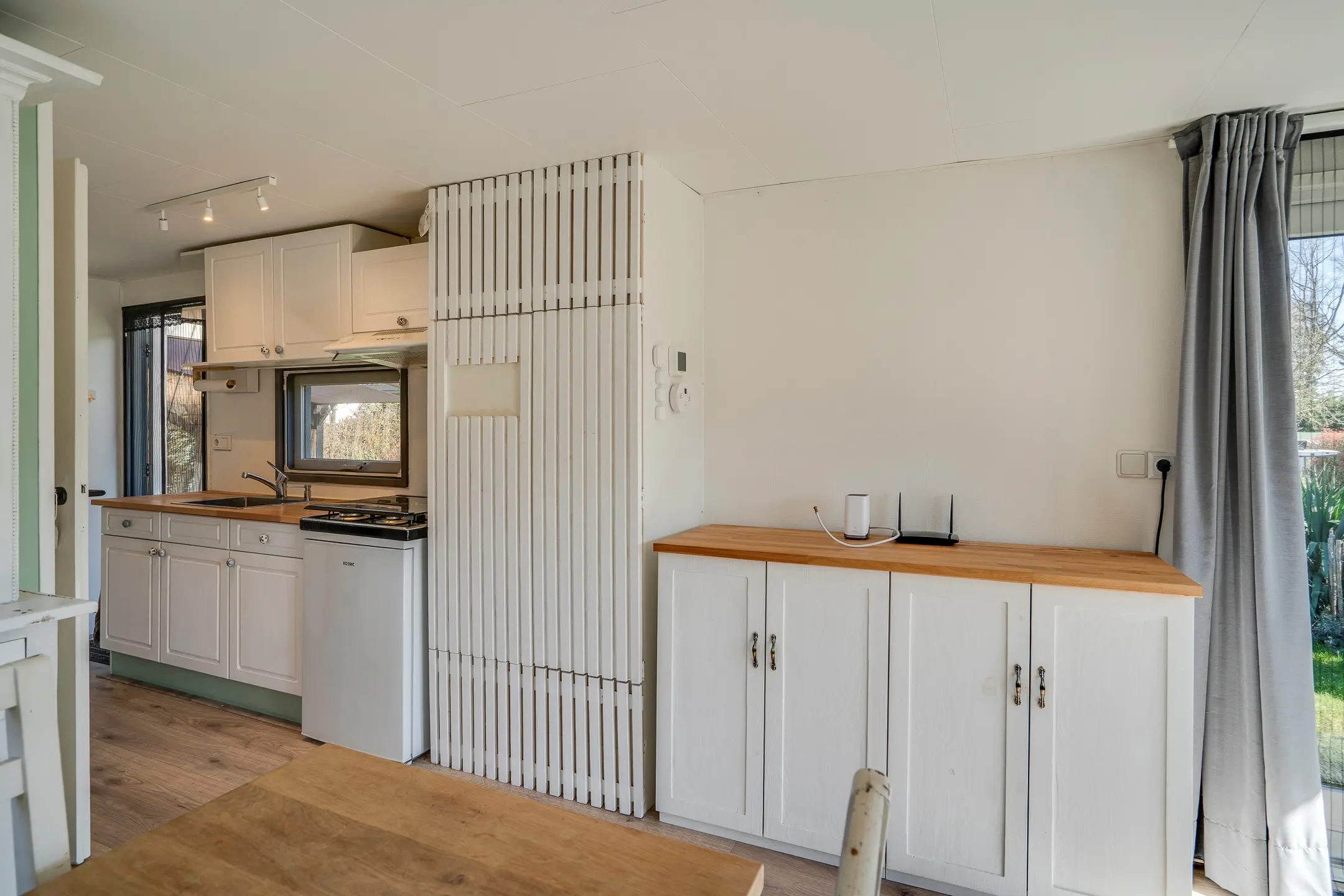 Het gehele chalet is afgewerkt met een moderne laminaatvloer en beschikt over radiatoren voor optimaal comfort, het hele jaar door.