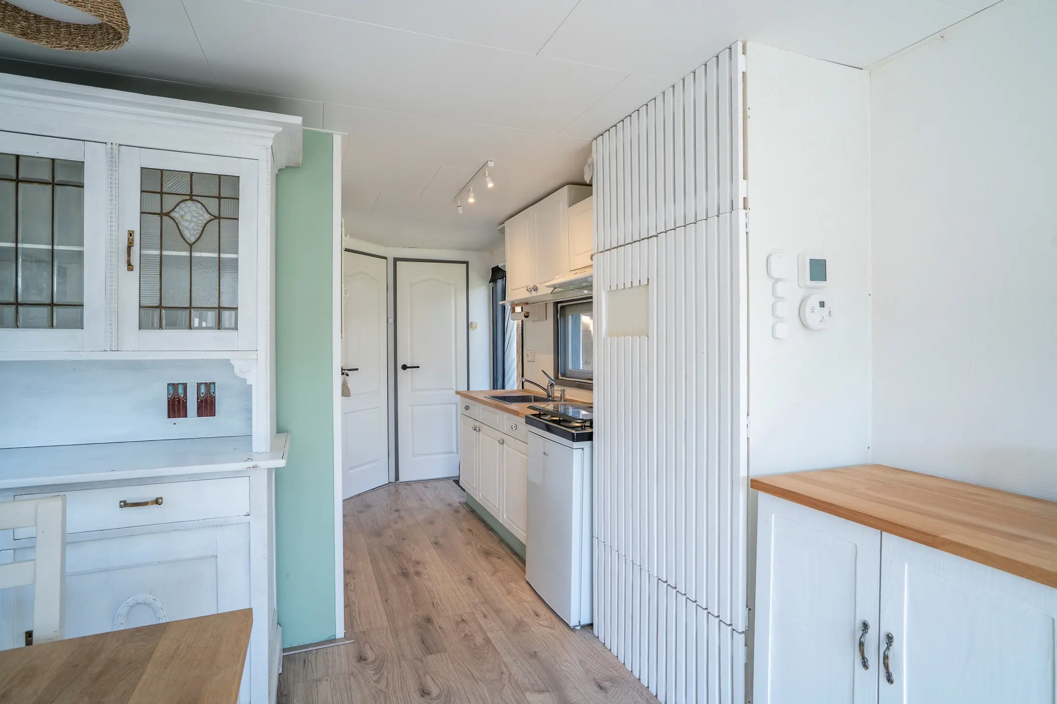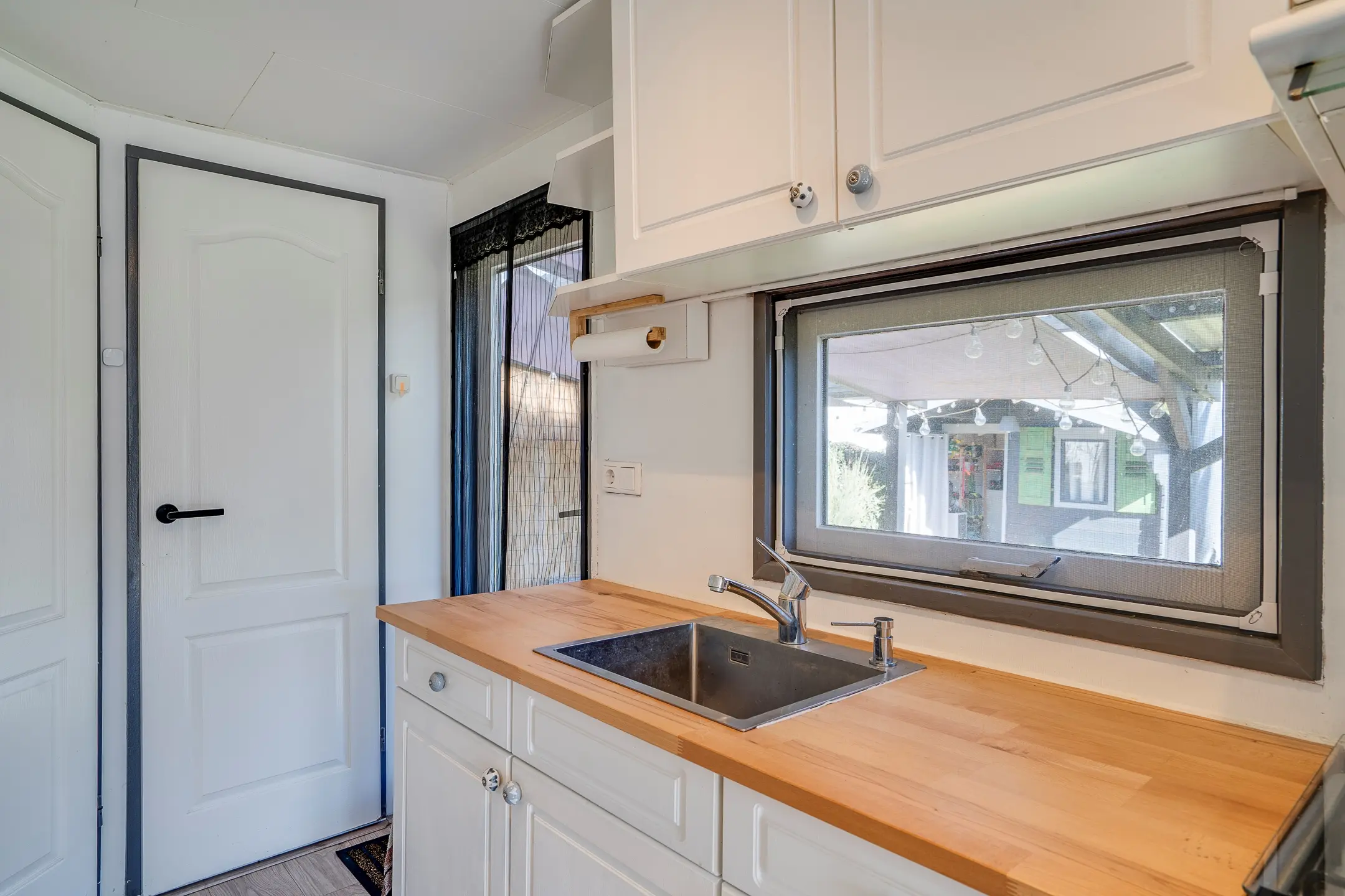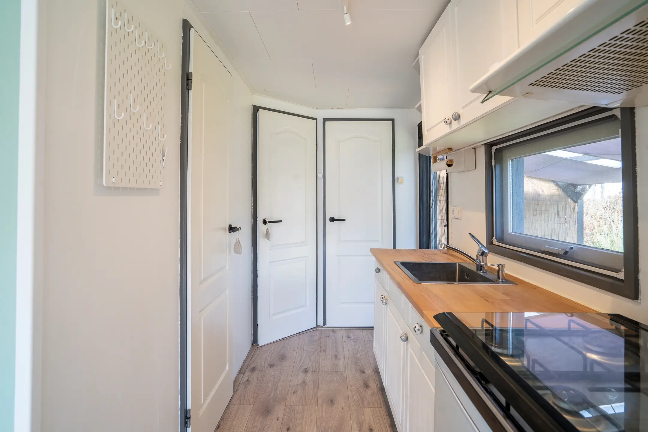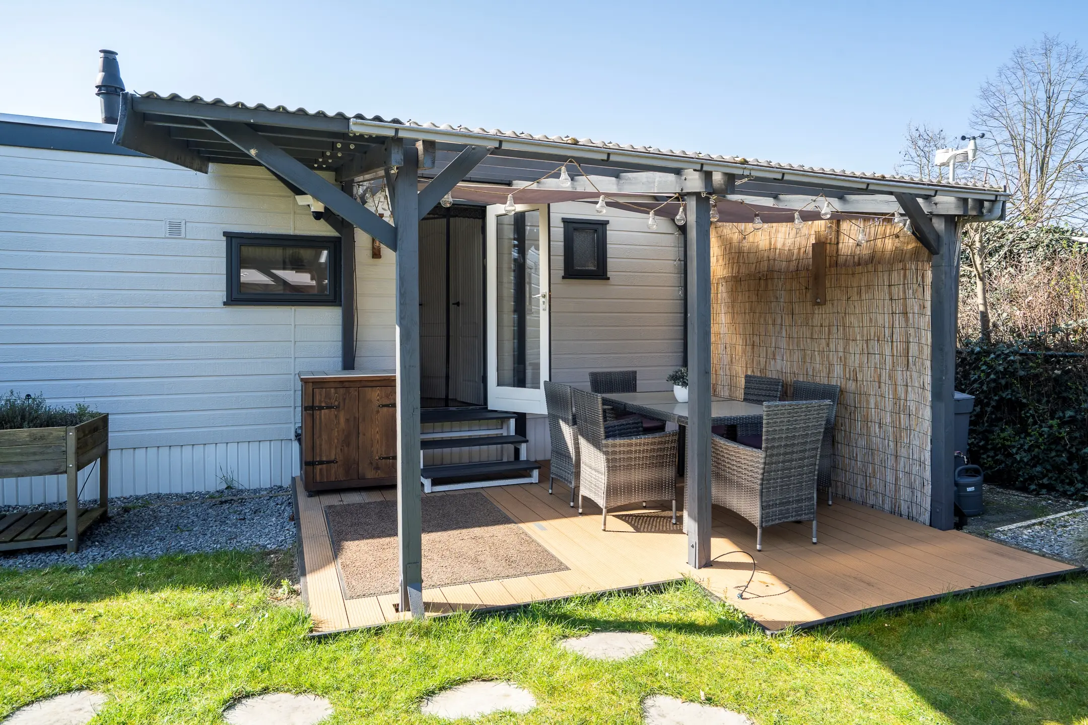 De praktische berging is voorzien van elektra en wateraansluitingen en biedt ruimte voor opslag én witgoed.
