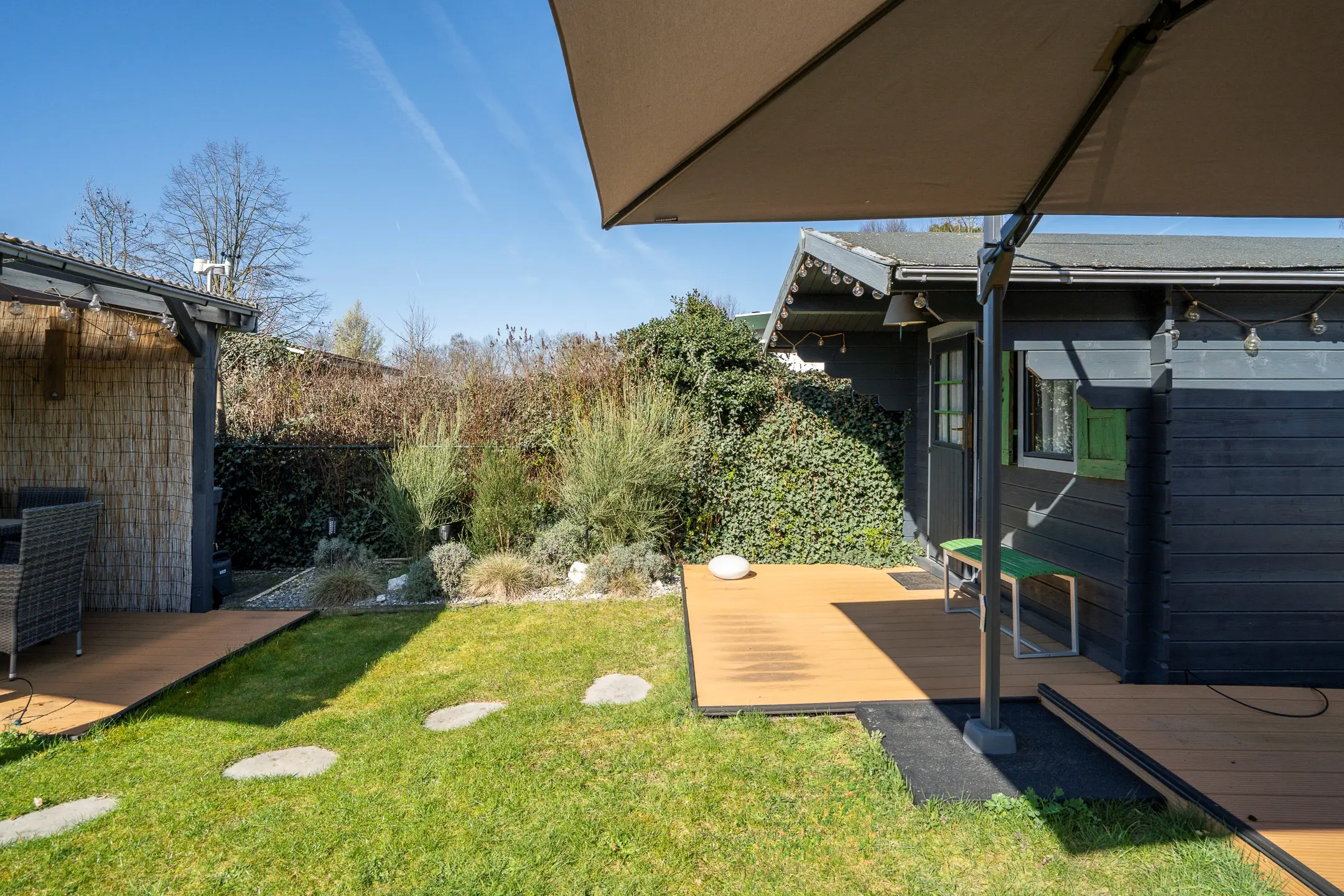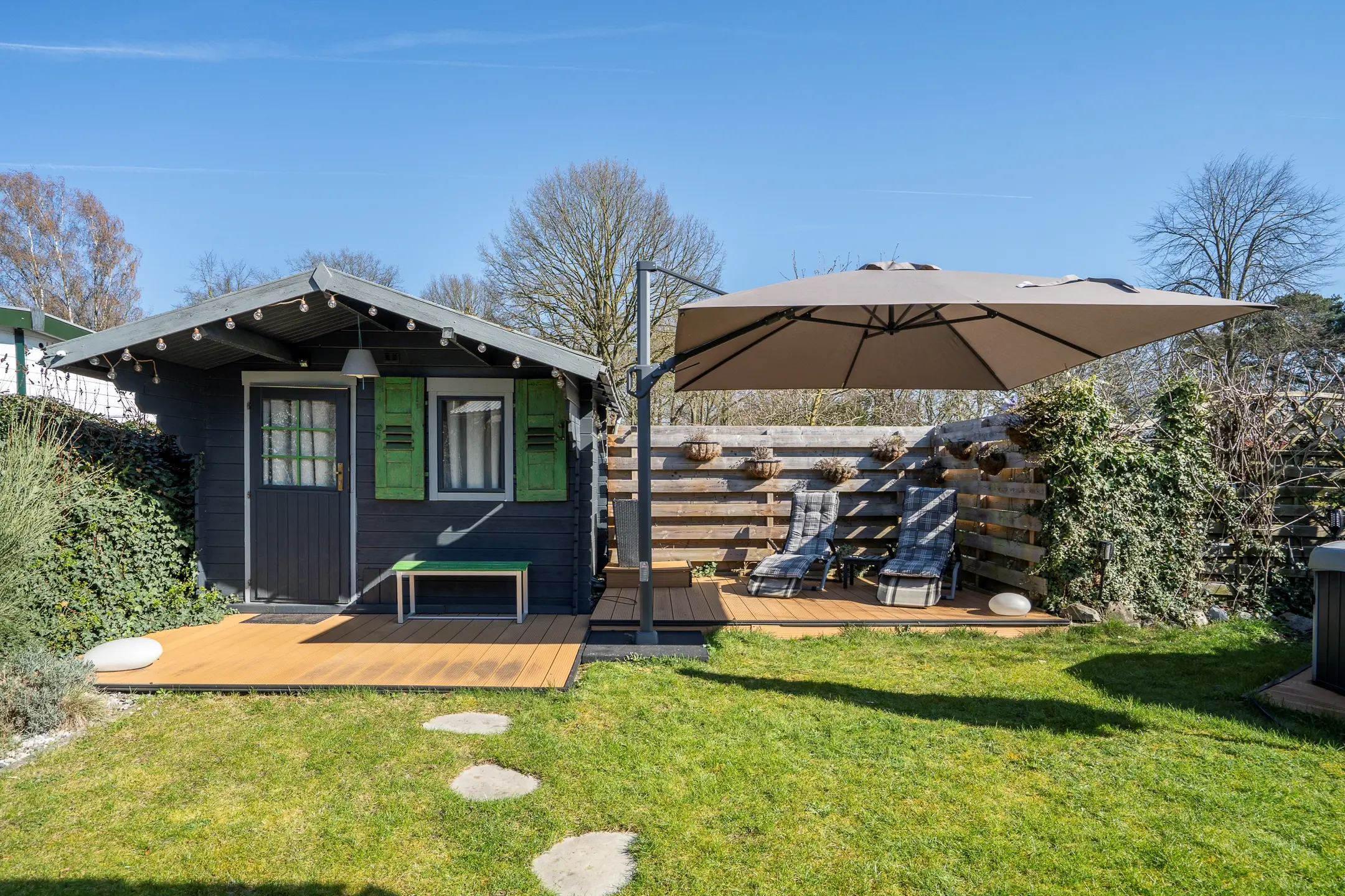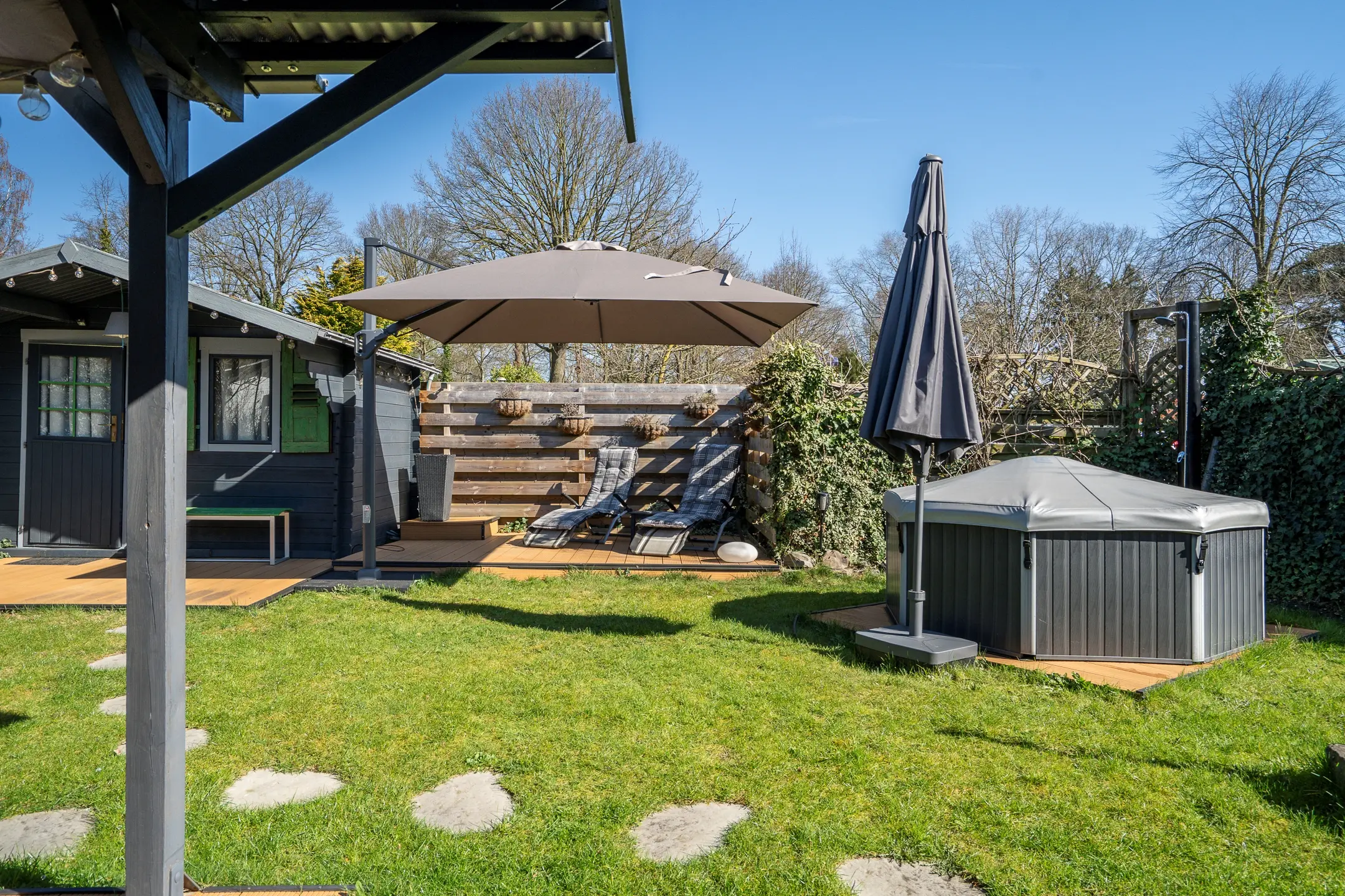 De tuin is een absolute eyecatcher. Met meerdere terrassen, een sfeervolle overkapping en een privé spa met jacuzzi en buitendouche, is dit dé plek om te ontspannen. Of u nu kiest voor zon of schaduw, hier geniet u op elk moment van de dag.