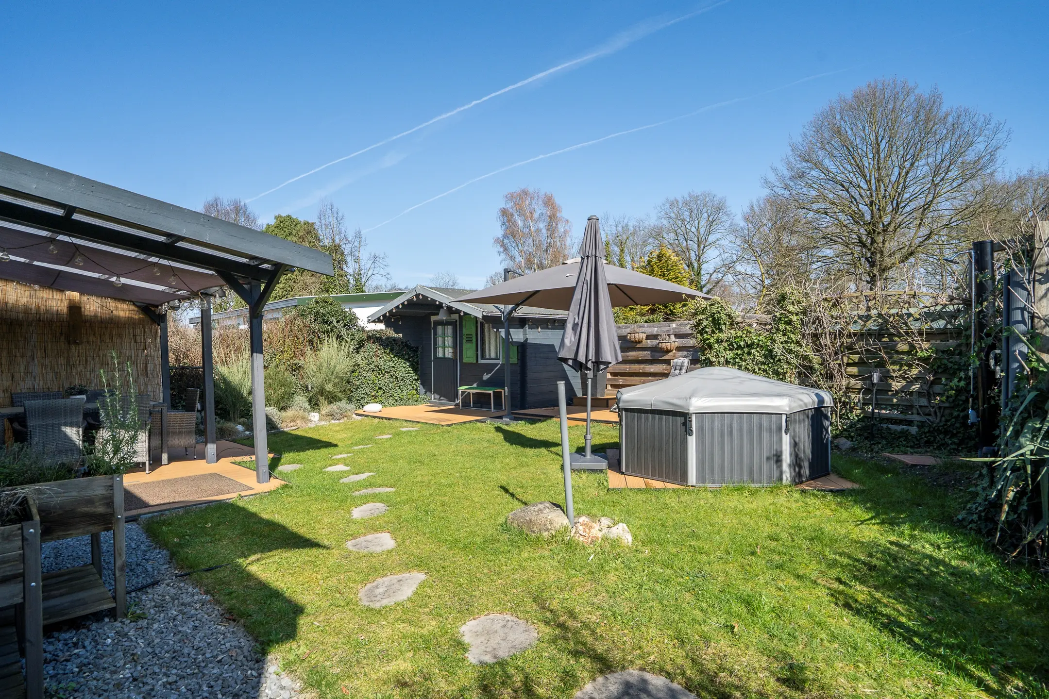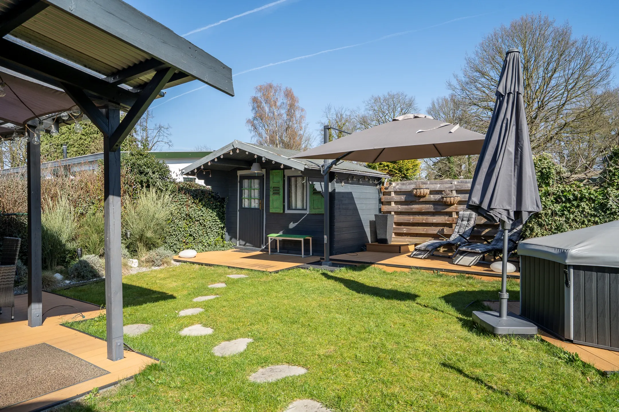 • Luxe tuin met meerdere terrassen, overkapping en privé spa