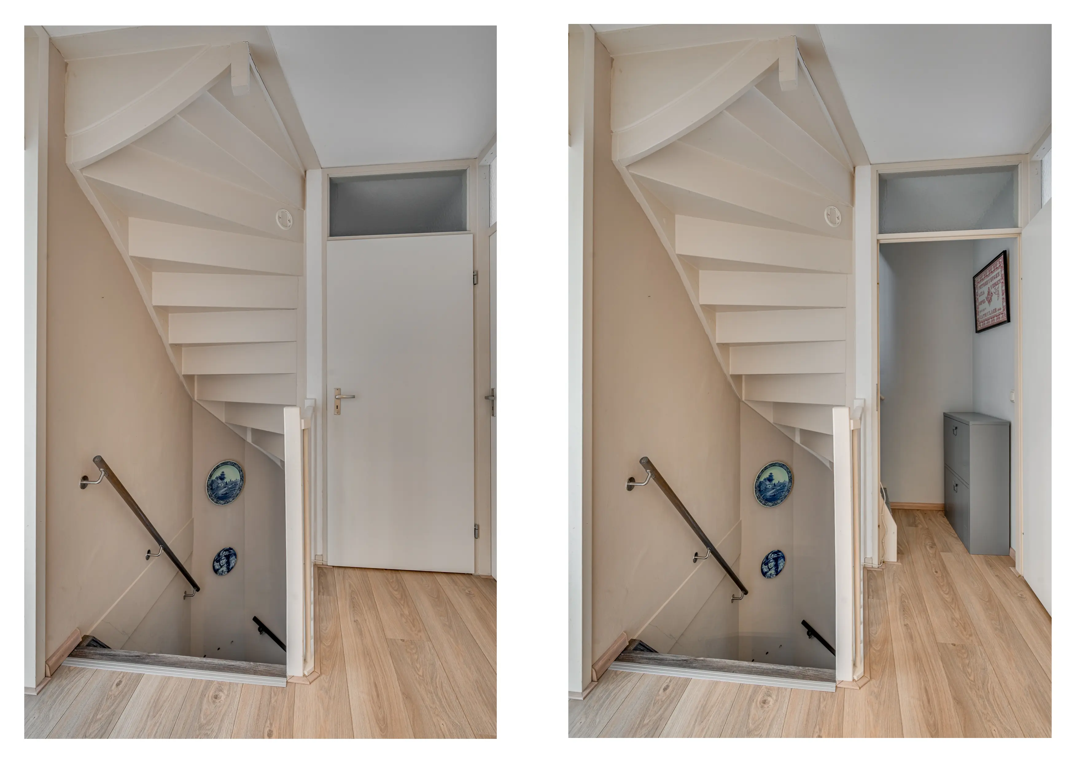 Via de overkapte zijkant van de woning betreedt u de verzorgde hal, afgewerkt met een fraaie pvc-vloer. In de hal bevinden zich de opgang naar de eerste verdieping, een praktische garderobe, de meterkast en het in 2022 vernieuwde, moderne toilet met fonteintje. Vanuit hier heeft u tevens toegang tot de ruime en sfeervolle living.