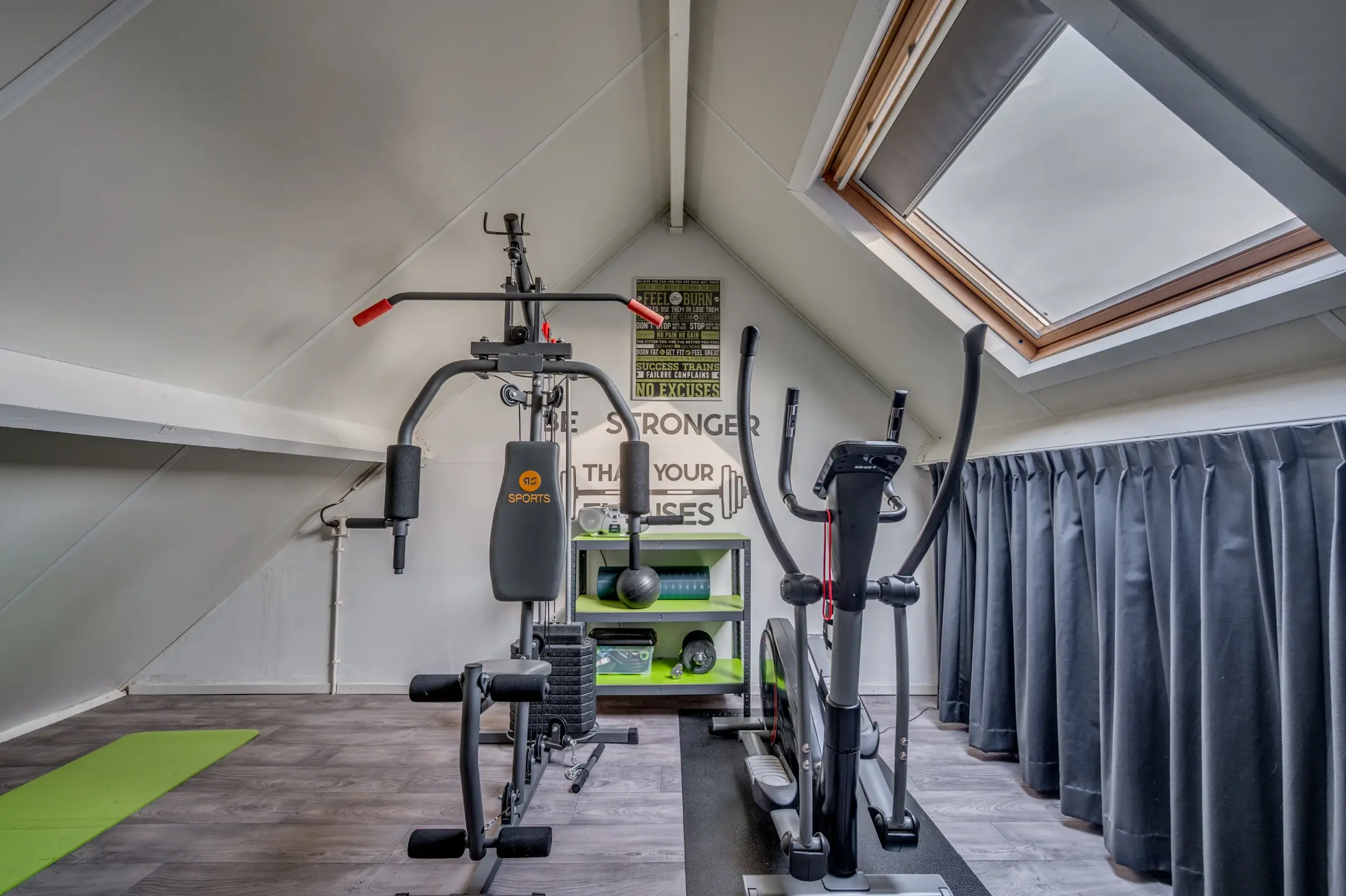 Via een vaste trap bereikt u de tweede verdieping, waar de vierde kamer zich bevindt. Deze ruimte is multifunctioneel en wordt momenteel gebruikt als gym, maar is ook uitstekend geschikt als slaapkamer, werkkamer of hobbyruimte. De kamer is voorzien van een fraaie laminaatvloer en een dakraam, waardoor er veel daglicht binnenvalt. Op deze verdieping vindt u tevens de Remeha CV-ketel (2014), de omvormer van de zonnepanelen en de mechanische ventilatie, alles keurig weggewerkt en makkelijk bereikbaar.