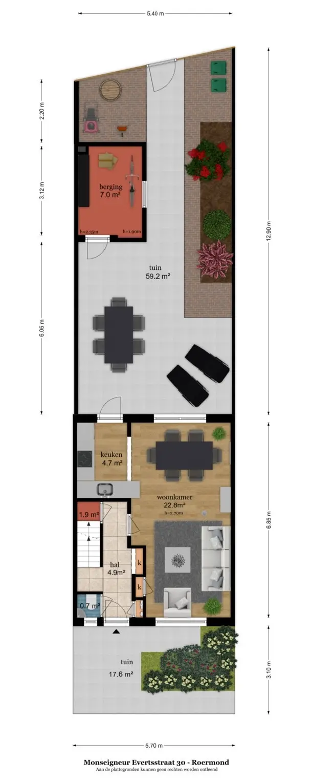 • Onderhoudsvriendelijke tuin met betegeld terras en eigen achterom