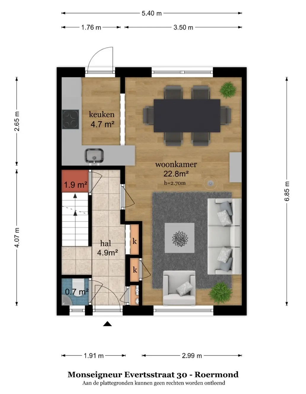 De indeling van de woning: