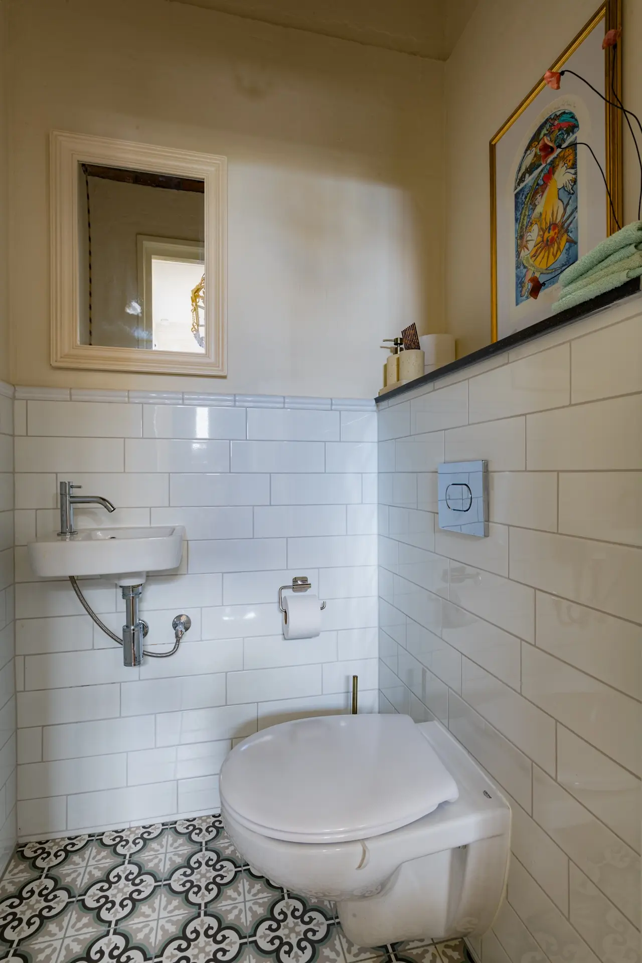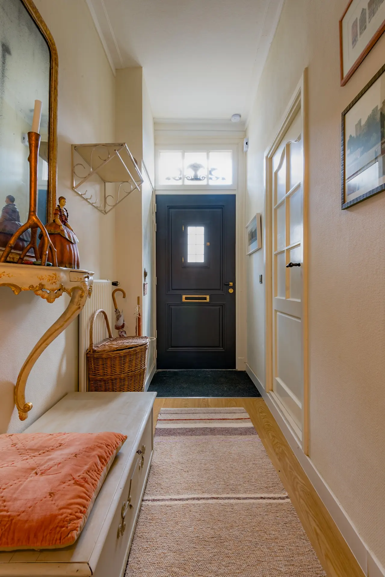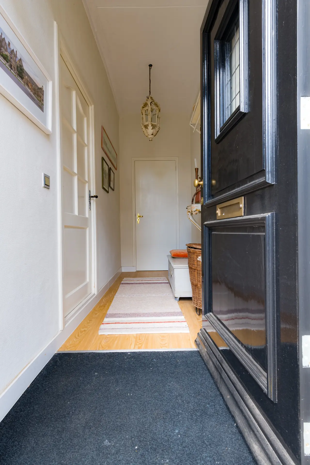 De woning beschikt over twee entrees: één aan de voorzijde en één aan de zijkant. De huidige bewoners gebruiken zowel de entree aan de zijkant, die uitkomt in een ruime, stijlvolle keuken alsook de ruime entree aan de voorzijde. Deze entree verwelkomt je met een ruime hal, vernieuwde meterkast (2025) en het modern gastentoilet met hangcloset en fonteintje.