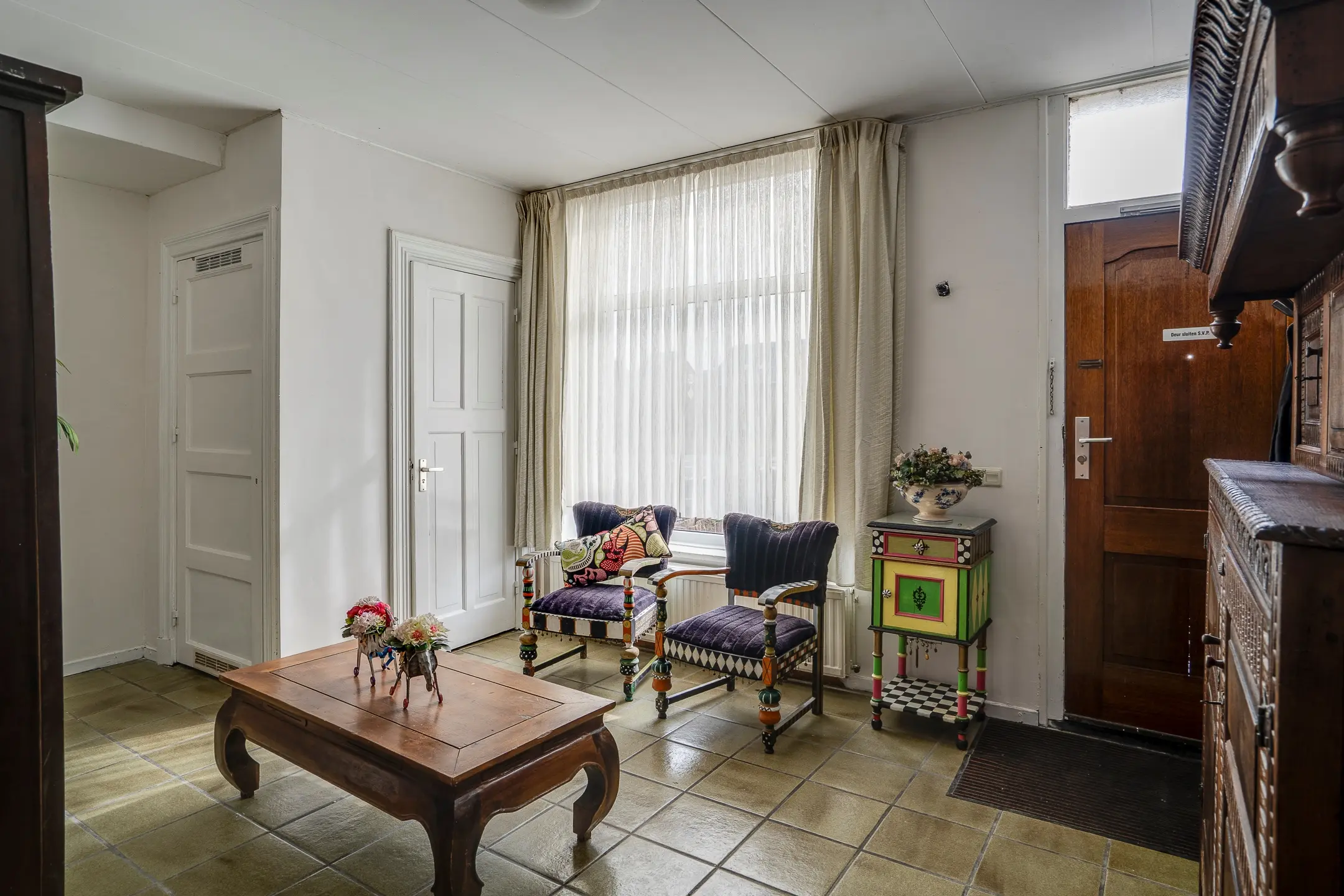 De entree zet direct de toon. Via een fraaie houten voordeur stap je binnen in een ruime, betegelde hal van circa 20 m². Hier is volop plaats voor een garderobe en vind je de moderne meterkast, die in 2018 volledig is vernieuwd en voorzien van maar liefst 15 groepen en een 3-fase aansluiting.