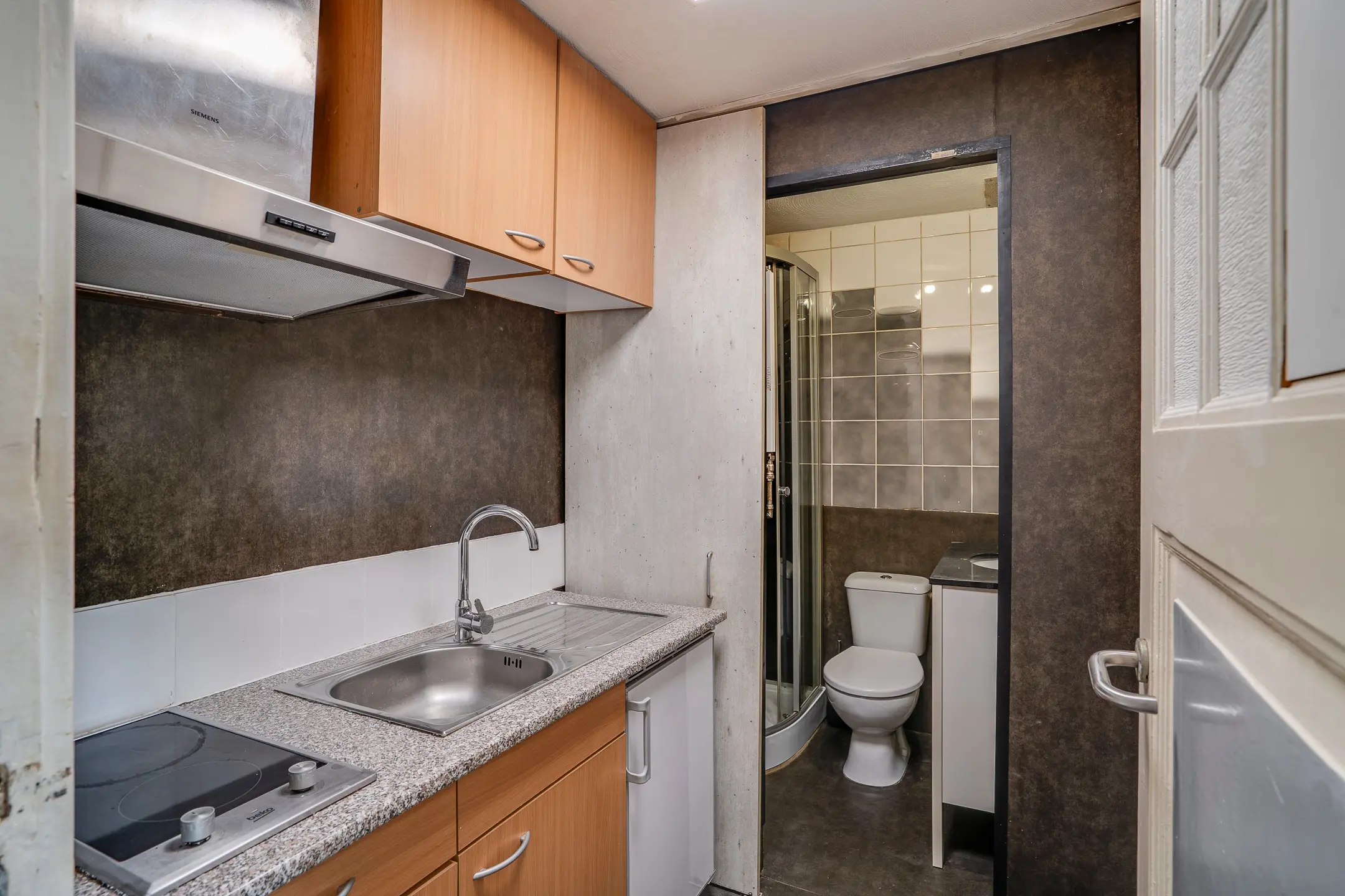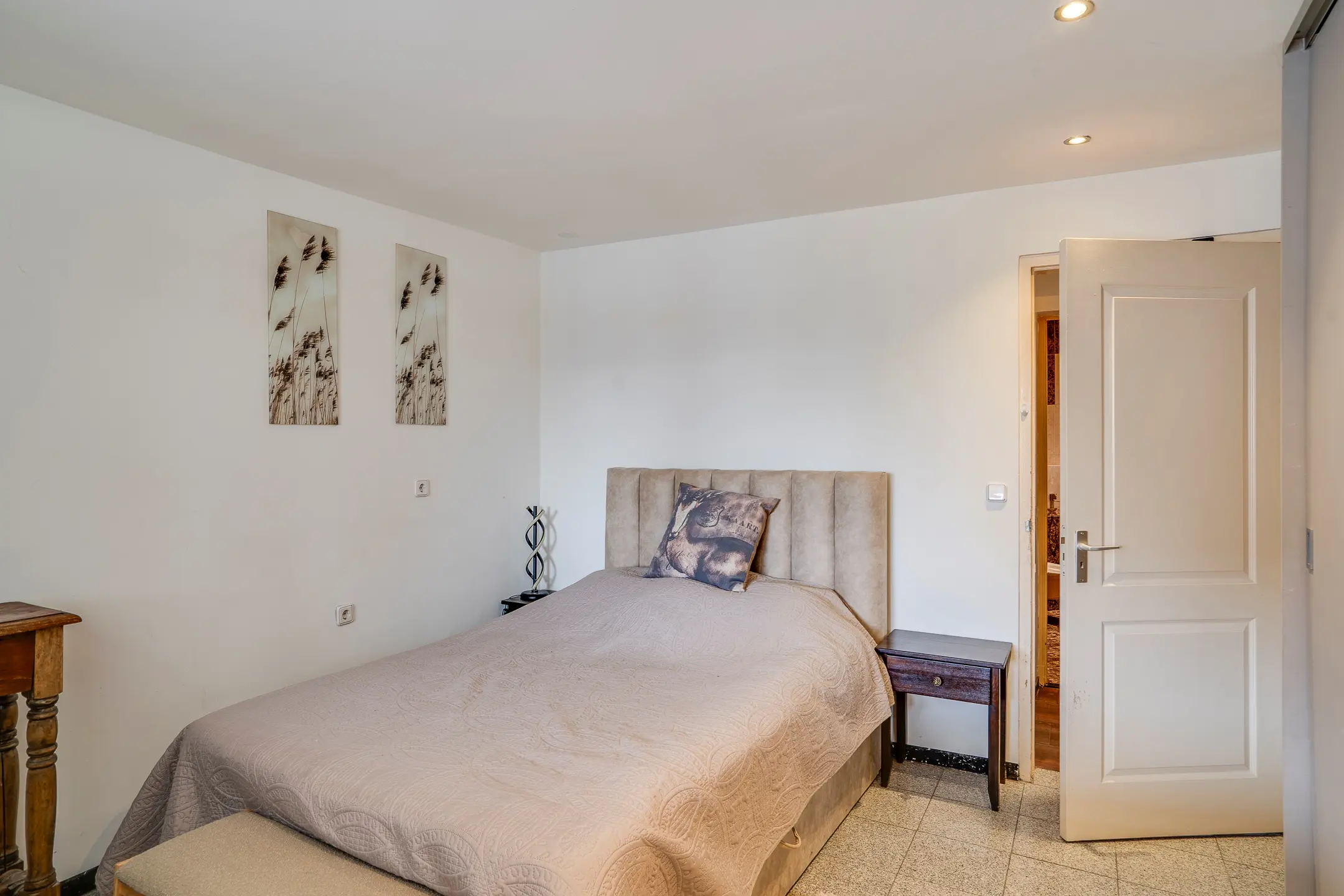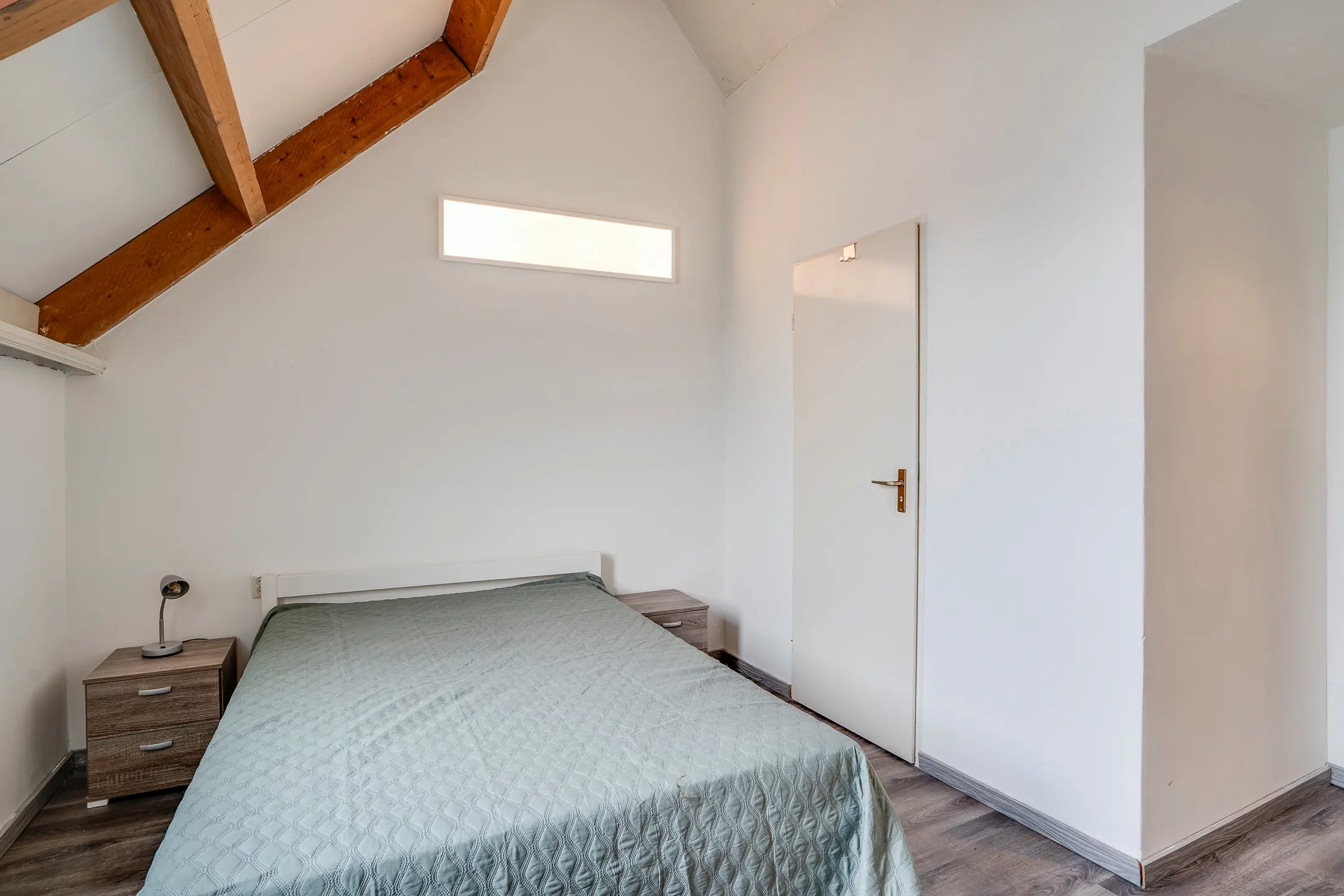 Het appartement beschikt over één slaapkamer met badkamer en-suite, voorzien van inloopdouche, wastafel en toilet. Vanuit de slaapkamer is er toegang tot het terras aan de achterzijde — een plek waar je in alle rust van buiten kunt genieten. Tevens bestaat er een verbinding met woning 2, wat flexibiliteit biedt in gebruik.