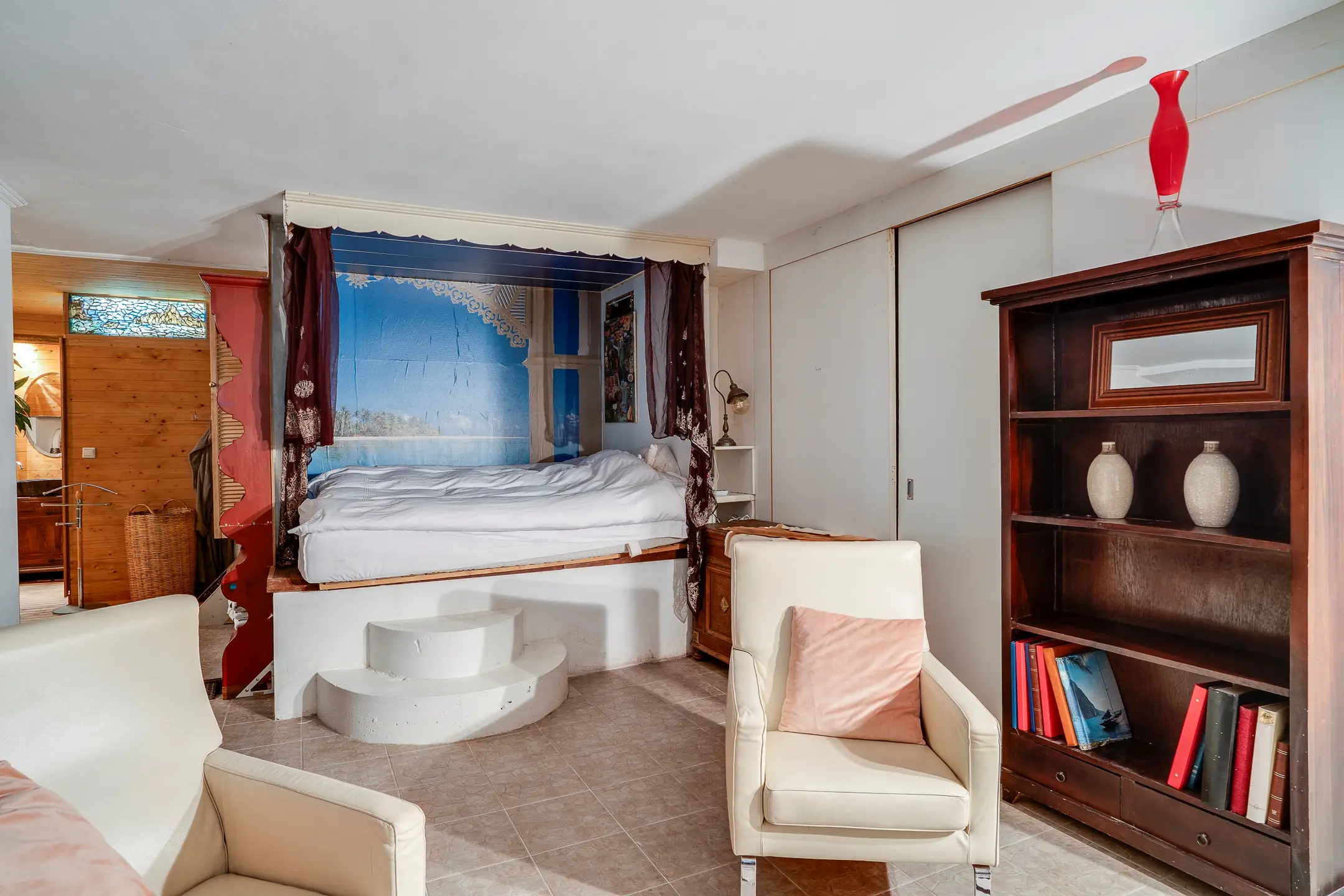 Via een trap in de woonkamer bereik je opnieuw de wellnessruimte in het souterrain — een subtiele verbinding tussen wonen en ontspannen.