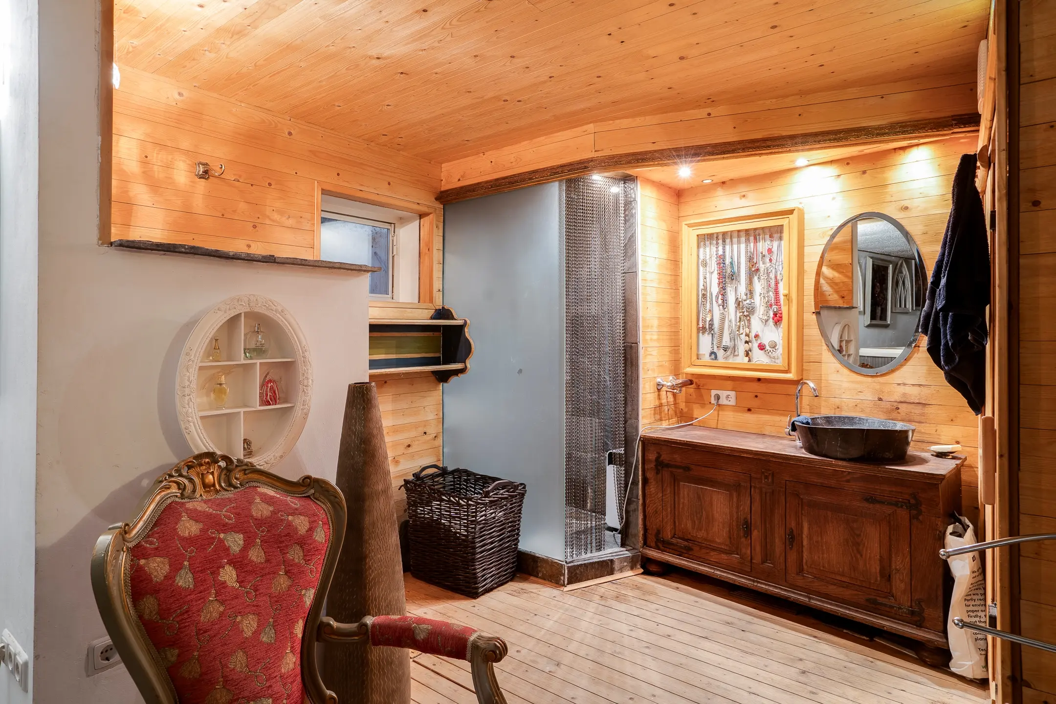 In het souterrain wacht een verrassende toevoeging: een inpandige wellnessruimte waar ontspanning centraal staat. Een plek om tot rust te komen, midden in je eigen woning.