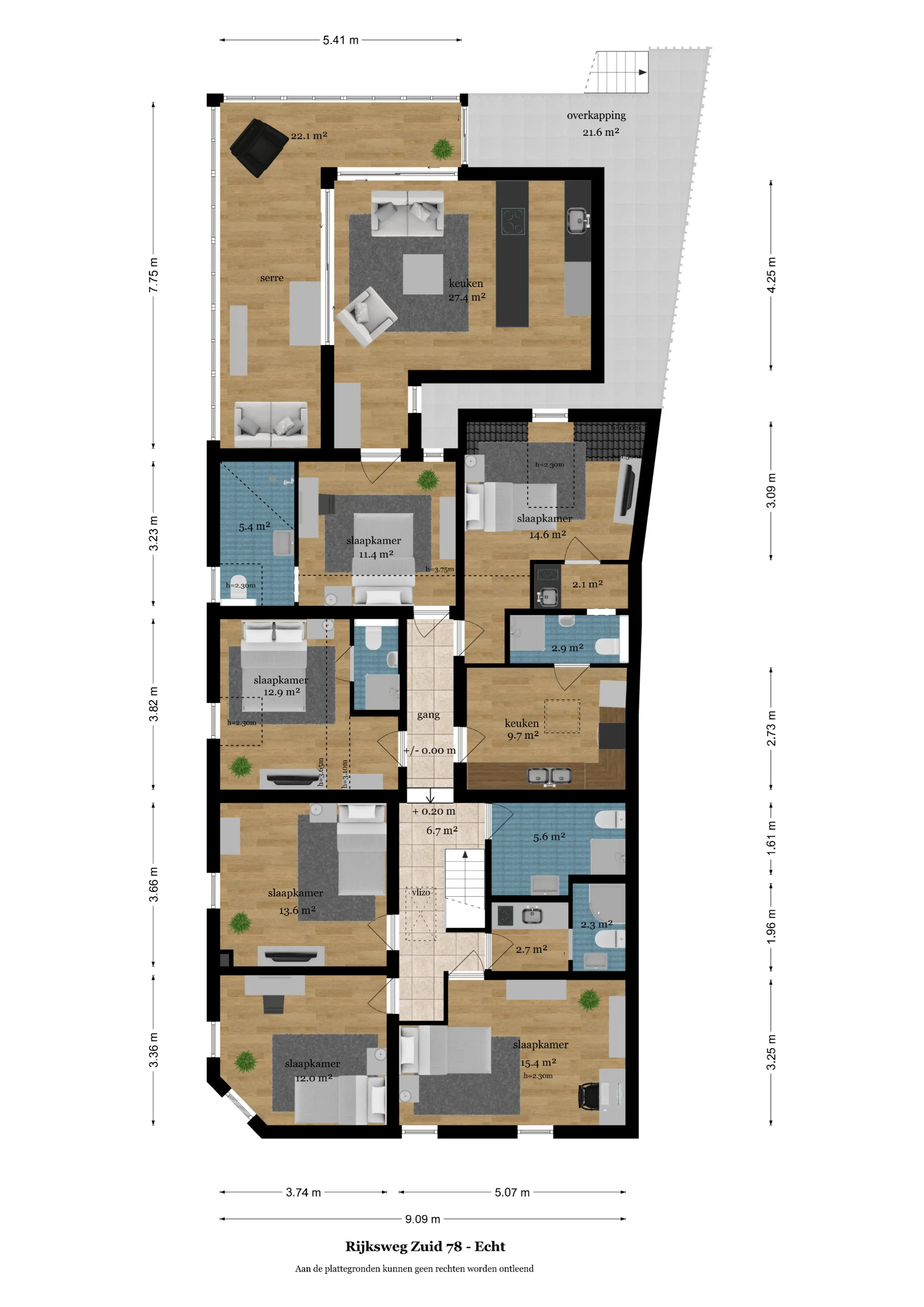 Verspreid over de woning vind je een indrukwekkend aantal ruimtes: maar liefst 8 slaapkamers, 6 badkamers, 3 keukens, 3 woonkamers, 2 serres, een bijkeuken en uiteraard de wellnessruimte. Elke ruimte draagt bij aan het gevoel van vrijheid en flexibiliteit.