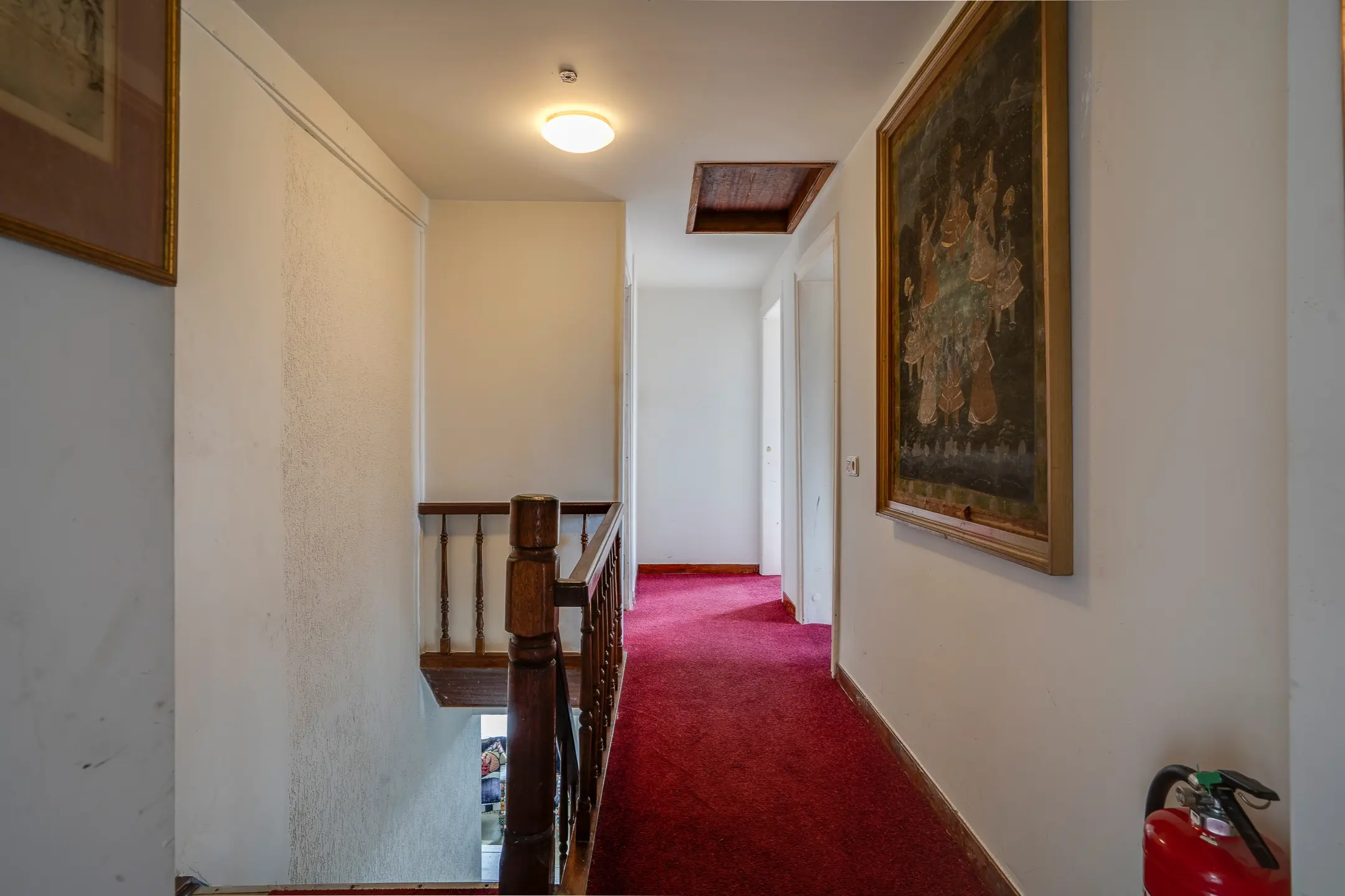 Via de centrale hal aan de voorzijde of de trap vanuit de woonkamer aan de achterzijde daal je af naar het souterrain — een plek die direct een ander gevoel oproept.