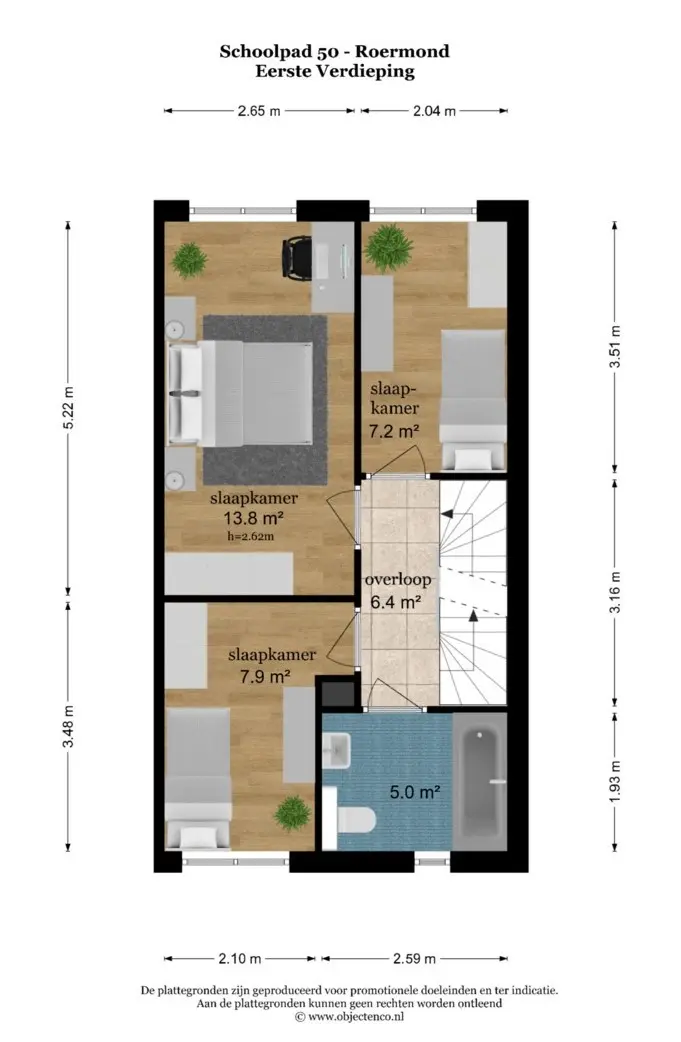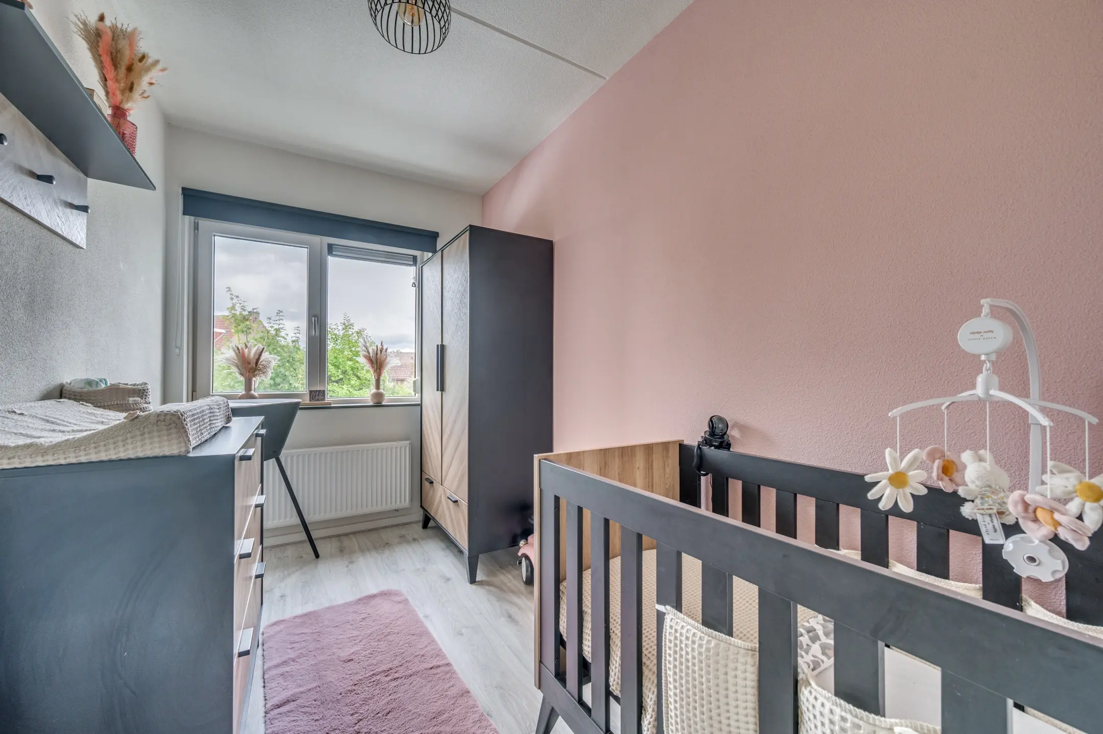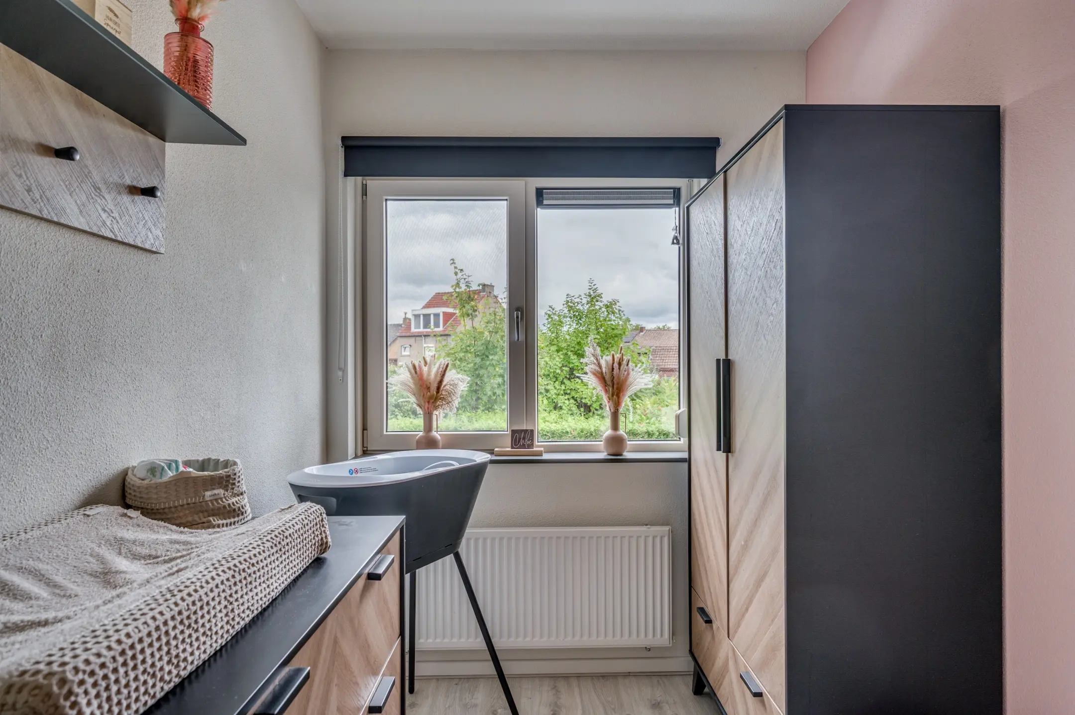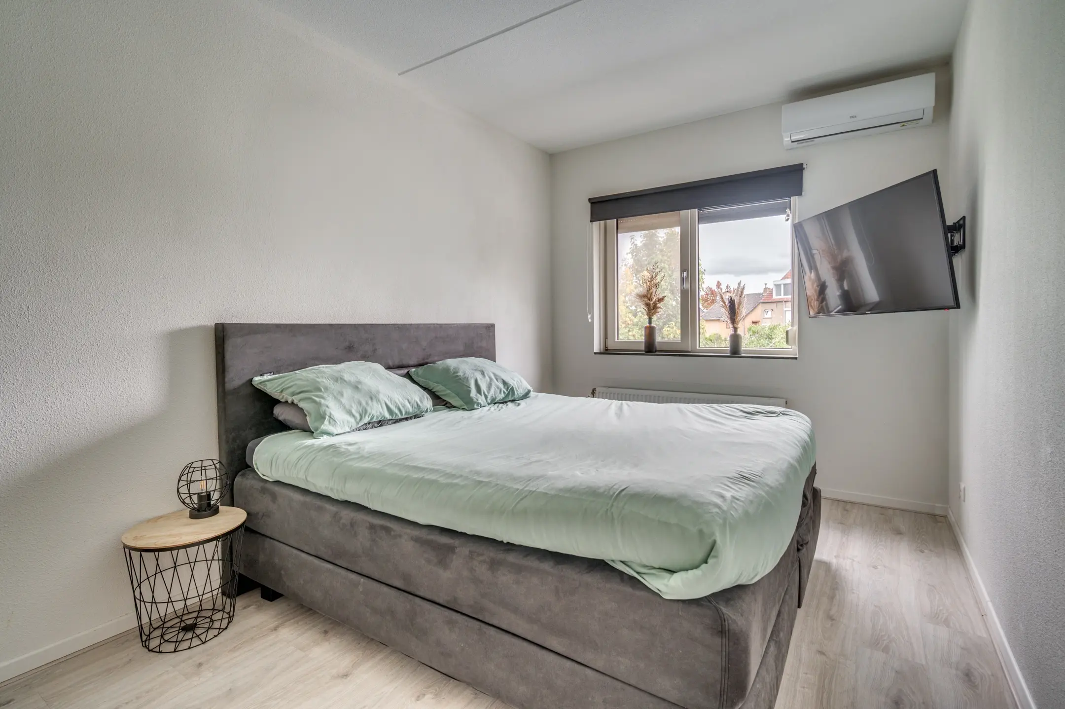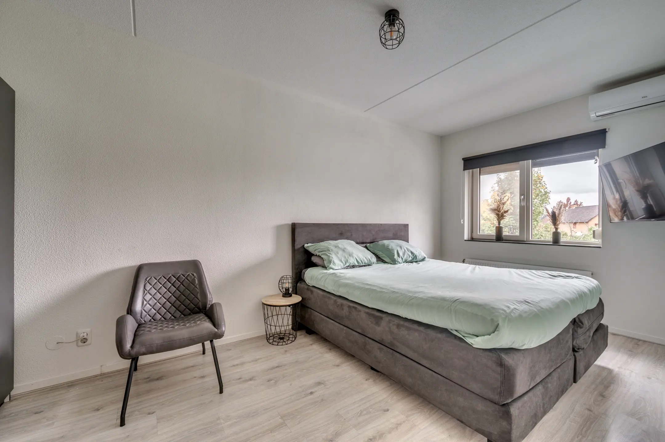 De overloop biedt toegang tot drie sfeervolle slaapkamers. De masterbedroom, met een royale oppervlakte van 14 m², ligt aan de rustige achterzijde van de woning en is bovendien uitgerust met een airconditioning voor extra comfort. Alle kamers zijn voorzien van onderhoudsvriendelijke kunststof kozijnen met HR++ glas en rolluiken, wat zorgt voor optimale isolatie en privacy.