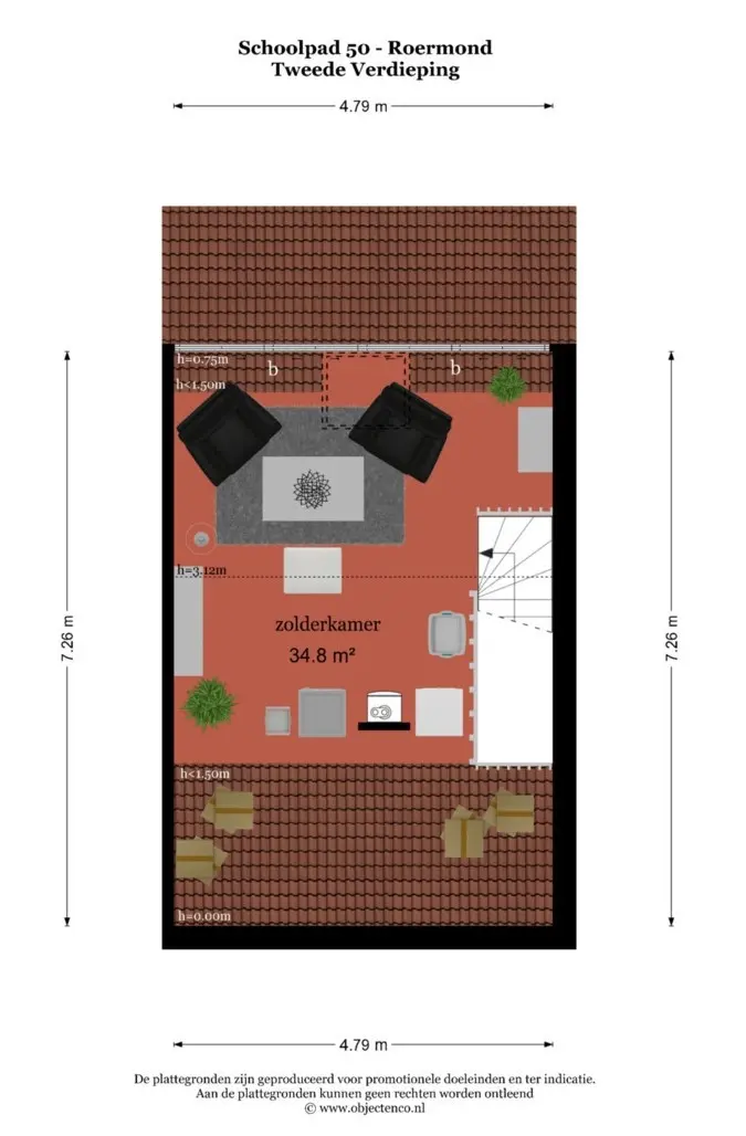 Indien gewenst is de ruimte nog eenvoudig te scheiden, waardoor aparte delen ontstaan die zich naast een slaapkamer uitstekend lenen als wasruimte, stookruimte of extra bergruimte.